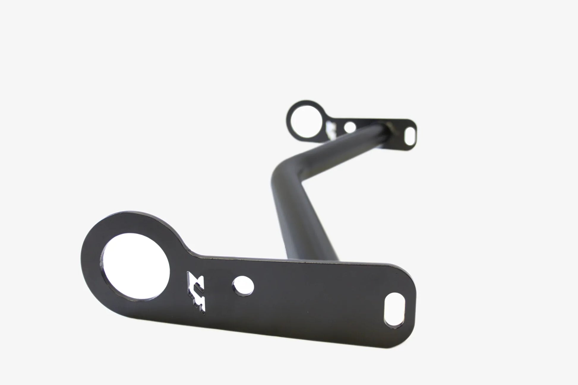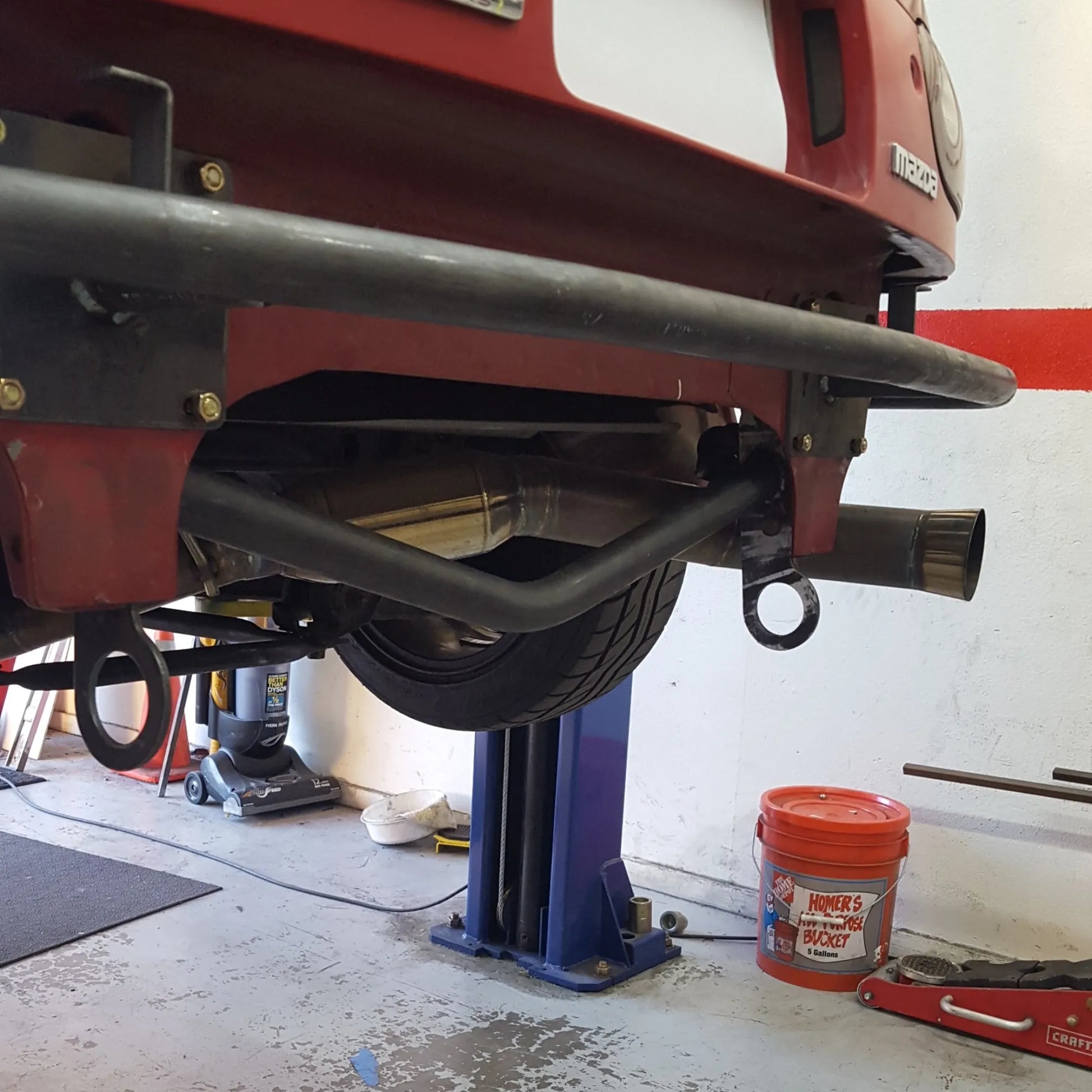 erek Fabrication Miata jacking point bar is designed specifically for jacking your car up from the center point, allowing you to lift both rear wheels at the same time. This bar is designed to be slightly hidden from behind and does not interfere with the stock bumper or exhaust. All Miata jacking point bars have an integrated tow hook for both the left and right side. Direct bolt-on for NA Miata, can fit NB Miata also with slight modification.*